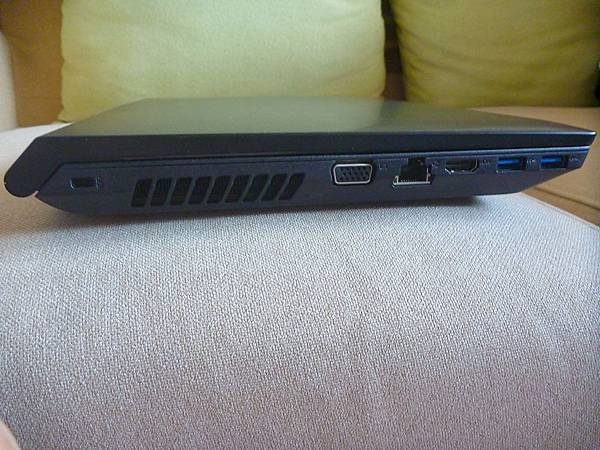 左側有鎖孔、散熱孔、VGA、LAN、HDMI、USB 3.0*2
