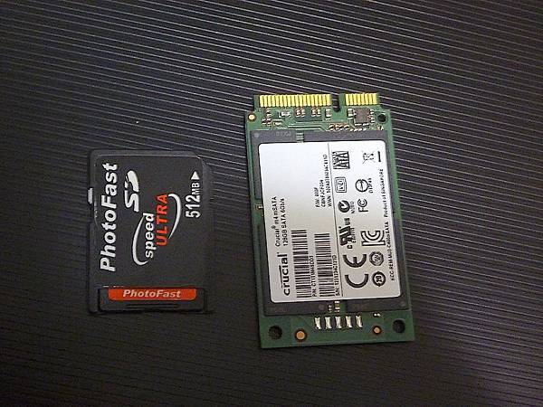 來跟SD卡比較一下,mSata SSD大約是SD卡的兩倍大,跟一般的標準2.5吋硬碟比起來真的